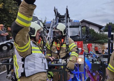Übungsszenario: Mitten im dichten alten Dorfkern brennt ein altes Haus inklusive angebautem Stadel – mehrere vermisste Personen