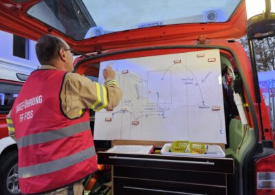 Einsatzleiter OBI Markus Schmid hat bei dieser Großeinsatzübung alle Hände voll zu tun um auch den notwendigen Überblick zu behalten.