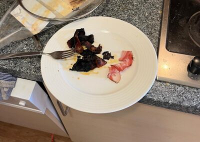 Alarmierungsgrund: Brandmeldealarm ausgelöst durch angebrannte Speisen.