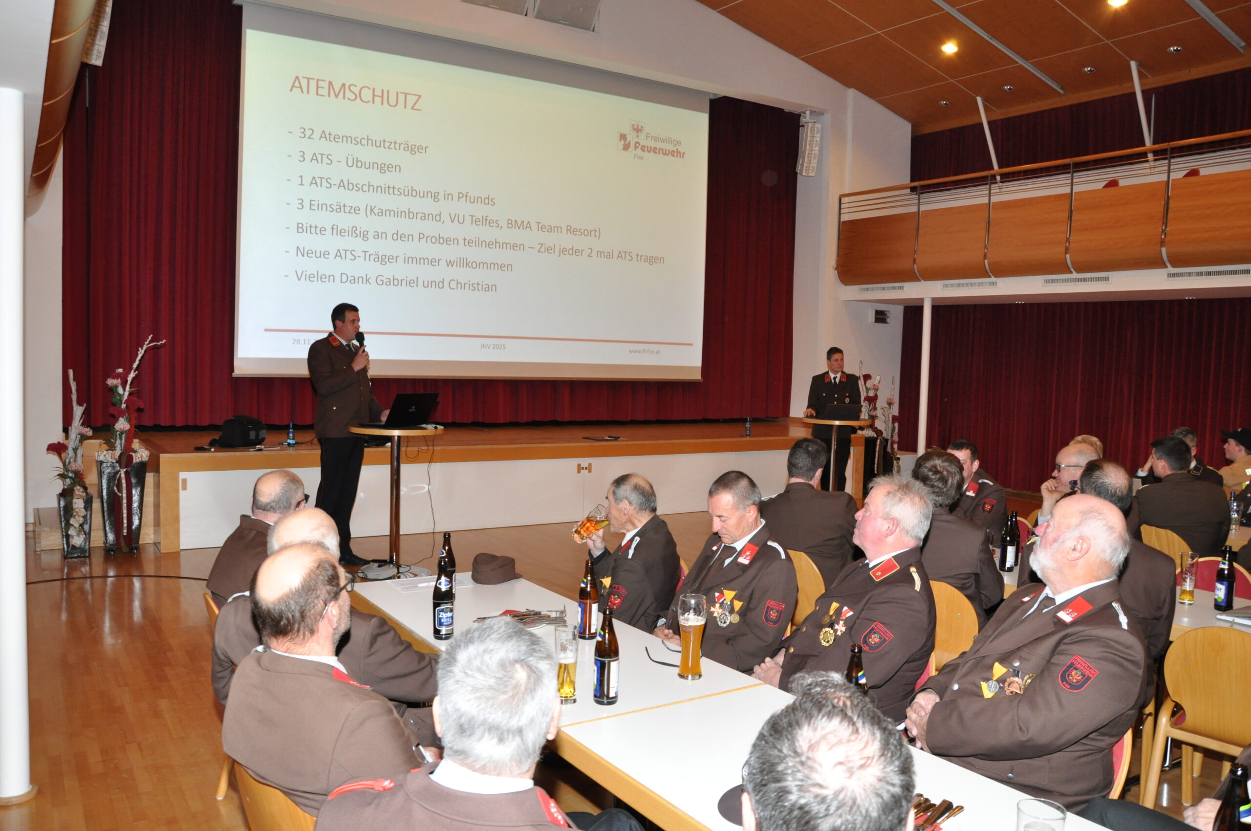 Bürgermeister Simon Schwendinger bedankte sich beim Kommando, dem Ausschuss und natürlich bei der Mannschaft für die tollen Leistungen für die Gemeinde Fiss – „es freut mich zu sehen, dass auch sehr schwierige Einsätze im Bereichsjahr 2025 erfolgreich abgearbeitet werden konnten.“