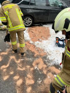Technische Hilfeleistung zum Binden ausgelaufener Betriebslüssigkeiten nach einem VU