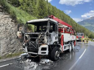 Die Feuerwehr Fiss wurde am 06.06.23 um 12:54 mittels Sirene und Pager zu einem Brand eines LKWs auf der L19 Serfauser Straße alarmiert.