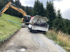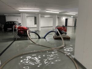 Unterstützung bei Pumparbeiten in einer Tiefgarage in Serfaus, sehr große Wassermengen