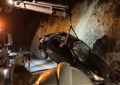 Maßnahmen: Ausleuchten der Unfallstelle, binden der ausgelaufenen Betriebsflüssigkeiten, Unterstützung beim Verladen
