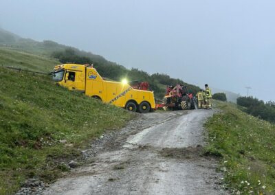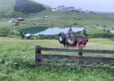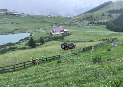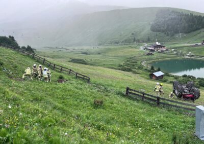 Alarmierungsgrund: Fahrzeugüberschlag im Bereich Cervosa Alm (Komperdell 1979m Seehöhe) – Traktor mehrmals überschlagen
