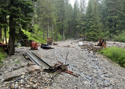 Alarmierung erfolgte eigentlich nach Serfaus, aber bei der Anfahrt dorthin wurde festgestellt, dass im Bereich Beutelbach Beutelwald ebenfalls der Bach massiv über die Ufer getreten war.