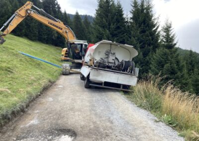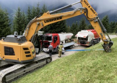 Maßnahmen: Nachschau und Feststellung, dass die Böschung dem Druck nicht mehr Stand halten hielt und sich der LKW mehr und mehr neigte