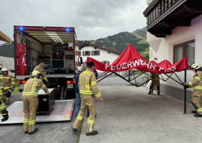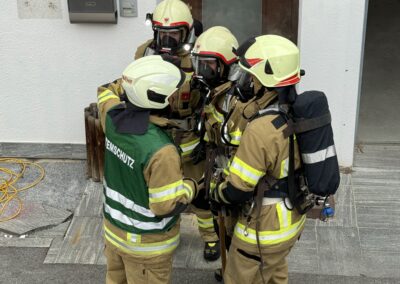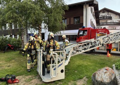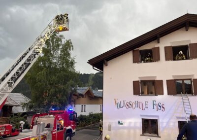 Da die Gemeinde Fiss das Volksschulgebäude auf Grund eines Neubaus abreisen lässt, konnten die Feuerwehren aus Serfaus, Fiss und Ladis das Bestandsgebäude unter realen Bedingungen beüben.