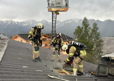 Ebenfalls musste für die Entrauchung des Stiegenhauses eine Dachöffnung herausgeschnitten werden, diese konnte jedoch durch das Gewitter nicht fertig gestellt werden.